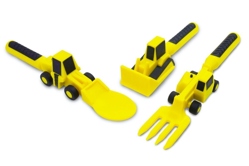 Make mealtime fun and independent with the Constructive Eating - Construction set! Designed with textured handles and patented features, the Fork Lift Fork, Front Loader Spoon, Bull Dozer Pusher, and Construction Plate make scooping and eating easy for little hands. Trusted by families and therapists alike, this playful tableware helps develop fine motor skills while turning every bite into a construction adventure. Perfect for encouraging even the fussiest eaters to build their confidence at the table!