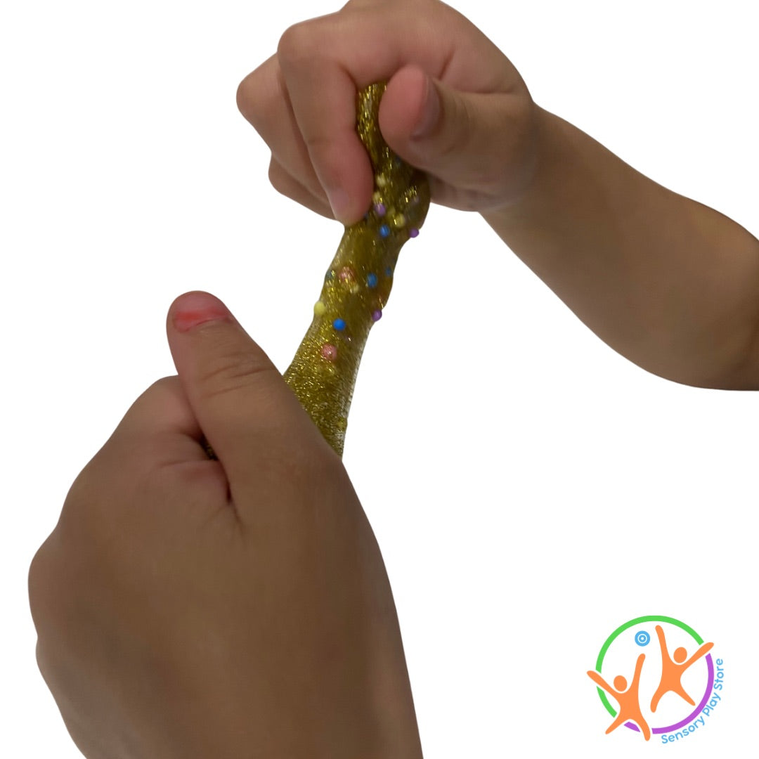 Experience the satisfying snap, crackle, and crunch of Crunchy Putty Glitter! This playful putty feels like chewy gum and sparkles with glitter while the colourful crunchy balls inside pop and crackle as you squish and stretch. Available in four dazzling colours—light pink with purple crunch, gold with multicolour crunch, purple with blue crunch, and silver with multicolour crunch—each one offers a fun sensory experience that’s as mesmerizing to look at as it is to play with. Perfect for hours of tactile fun and stress relief!
